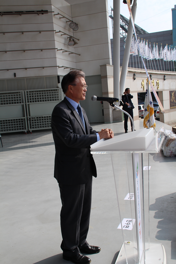 ±¹¹ÎÀÇÈû ±è¹®¼ö ´ëÅë·É È帰¡ ±ÝÀÏ(30ÀÏ) Á¦ÃµÀ» ¹æ¹®ÇØ Áß¾Ó½ÃÀå¿¡¼­ À¯¼¼¸¦ ÆîÃÆ´Ù. ÀÌ ÀÚ¸®¿¡´Â Á¦Ãµ´Ü¾ç ¾öÅ¿µ ±¹È¸ÀÇ¿øÀ» ºñ·ÔÇØ ±è±âÇö Àü ±¹¹ÎÀÇÈû ´ç´ëÇ¥(Çö ¿ï¡¦