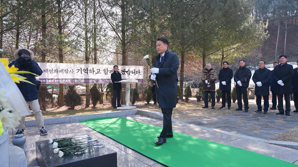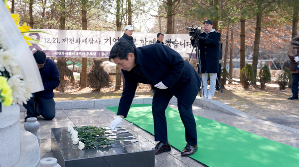±ÝÀÏ(6ÀÏ) ¿ÀÀü 11½Ã 30ºÐ Á¦ÃµÈ­ÀçÂü»ç À¯°¡Á·°ú ±è¿µÈ¯ ÃæºÏÁö»ç,±èâ±Ô Á¦Ãµ½ÃÀå,¹Ú¿µ±â Á¦Ãµ½ÃÀÇÀå µîÀÌ ÇÔ²² Á¦ÃµÈ­ÀçÂü»ç Ãß¸ð °ø¿øÀ» ¹æ¹®ÇØ Ã߸ðºñ¿¡ Âü¹èÇß´Ù. Æ¯È÷ À̹ø Ãß¸ð°ø¿ø ¹æ¹®Àº 2018³â 12¿ù Ã߸ðºñ °Ç¸³ ÀÌÈÄ ÃæÃ»ºÏµµÁö»çÀÇ Ã¹ Ãß¸ð°ø¿ø ¹æ¹®À¸·Î, Èñ»ýÀÚµéÀÇ ¸íº¹À» ºô°í À¯°¡Á·°ú Áö¿ª»çȸ¿¡ À§·Î¸¦ ÀüÇÏ´Â ¶æ±íÀº ÀÚ¸®¿´´Ù.(ÁÖÀºÃ¶ ±âÀÚ)