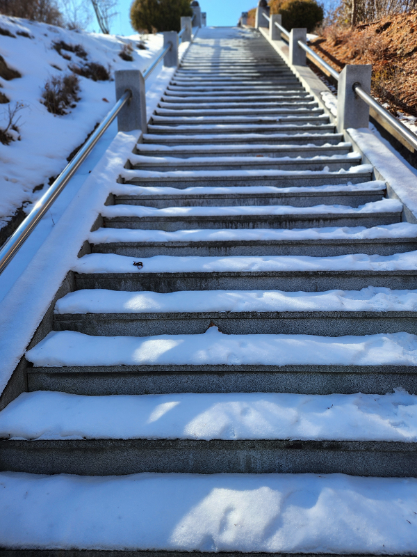 °è´ÜÀÌ °¡ÆÄ¸£°í ´«ÀÌ ½×¿© °è´ÜÀ» ¿À¸£´Âµ¥ ¾î·Á¿òÀÌ µû¶ú´Ù.