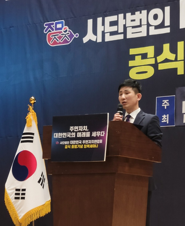 »ç´Ü¹ýÀÎ ´ëÇѹα¹ÁÖ¹ÎÀÚÄ¡¿¬ÇÕȸ(ȸÀå ÁöÇüÀÏ)°¡ °ø½Ä Ãâ¹üÀ» ±¹È¸¿¡¼ ¾Ë¸®¸ç,ÈûÂù ù¹ßÀ» ³»µó¾ú´Ù.