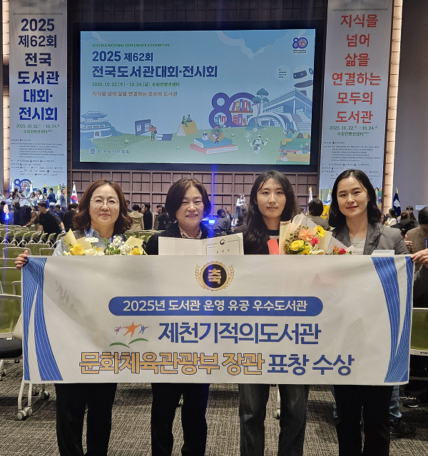 Á¦Ãµ±âÀûÀǵµ¼­°ü(°üÀå À̸íÀÚ)ÀÌ Áö³­ 22ÀÏ ¼ö¿ø¿¡¼­ ¿­¸° Á¦62ȸ Àü±¹µµ¼­°ü´ëȸ¿¡¼­ ¡®2025³â µµ¼­°ü ¿î¿µ À¯°ø ¿ì¼öµµ¼­°ü¡¯À¸·Î ¼±Á¤µÇ¾î ¹®È­Ã¼À°°ü±¤ºÎ Àå°ü»óÀ» ¼ö»óÇÏ´Â ¿µ¿¹¸¦ ¾È¾Ò´Ù.