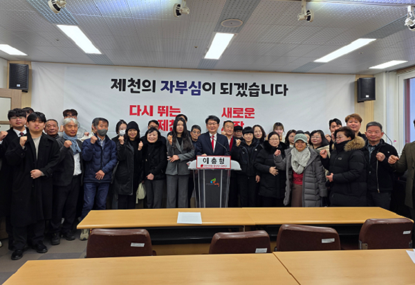 ÀÌÃæÇü ±¹¹ÎÀÇÈû Áß¾Ó´ç ´ëº¯ÀÎÀÌ Á¦Ãµ½ÃÀå Ã⸶¸¦ °ø½Ä ¼±¾ðÇÏ¸ç ¡°Á¦ÃµÀÇ ½ÉÀåÀ» ´Ù½Ã ¶Ù°Ô Çϰڴ١±°í ¹àÇû´Ù.
