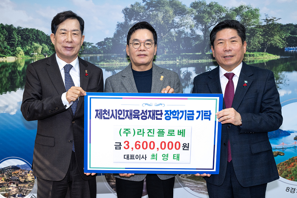 Á¦Ãµ Ãâ½ÅÀÎ ÃÖ¿µÅ ´ëÇ¥À̻簡 À̲ô´Â ¢ß¶óÁøÇ÷κ£°¡ 27ÀÏ Á¦Ãµ½ÃÀå½ÇÀ» ¹æ¹®ÇØ Á¦Ãµ½ÃÀÎÀçÀ°¼ºÀç´Ü(ÀÌ»çÀå ÁöÁßÇö)¿¡ ÀåÇÐ±Ý 360¸¸ ¿øÀ» ±âŹÇß´Ù.