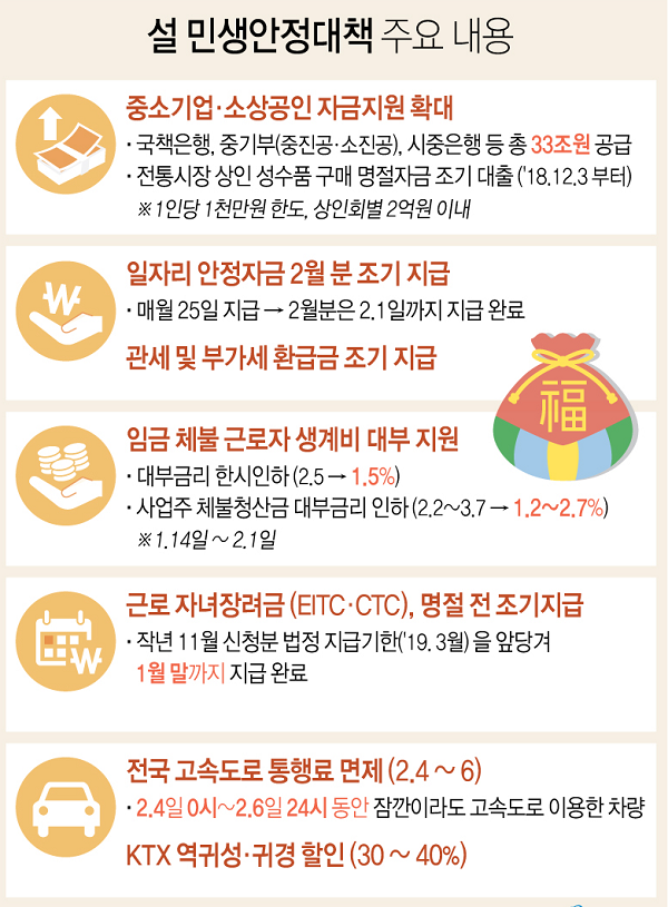 ¶ÇÇÑ Á¤ºÎ´Â ¼³ ¿¬ÈÞ 4Àϰ£ Àü±¹ °í¼Óµµ·Î ÅëÇà·á¸¦ Àü¸é ¸éÁ¦Çϰí, Áö¿ª»ç¶û»óǰ±Ç ¹ßÇà ±Ô¸ð¸¦ 4Á¶ ¿ø±îÁö ´ëÆø È®´ëÇÏ´Â µî ³»¼ö Ȱ¼ºÈ¿¡ ³ª¼±´Ù.Áß¼Ò±â¾÷ ±Ù·ÎÀÚ¿¡°Ô´Â ÃÖ´ë 45¸¸ ¿øÀÇ ÈÞ°¡ºñ¸¦ Áö¿øÇØ ±¹³» °ü±¤À» À¯µµÇϰí, ¿¬ÈÞ ±â°£ 24½Ã°£ ÀÀ±ÞÀÇ·áü°è¸¦ °¡µ¿ÇØ ¹Î»ý ¾ÈÀü »ç°¢Áö´ë¸¦ ÃÖ¼ÒÈÇÒ ¹æÄ§ÀÌ´Ù.
