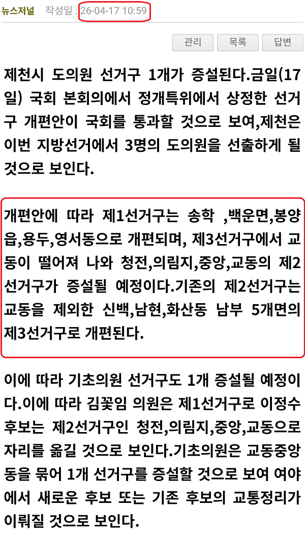 ÀÌ¿¡ µû¶ó Á¦1¼±°Å±¸ ¼ÛÇÐ ,¹é¿î¸é,ºÀ¾çÀ¾,¿ëµÎ,¿µ¼µ¿,Á¦2¼±°Å±¸ ûÀü,ÀǸ²Áö,Áß¾Ó,±³µ¿,Á¦3¼±°Å±¸ ½Å¹é,³²Çö,Ȼ굿 ³²ºÎ 5°³¸éÀ¸·Î È®Á¤µÅ ±âÃÊÀÇ¿ø ¼±°Å±¸ÀÇ ´ëÈ¥¶õµµ ÇÇÇÏ°Ô µÆ´Ù.´çÃÊ Á¦Ãµ´º½ºÀú³ÎÀÌ ¼Óº¸·Î ÀüÇÑ ´ë·Î µµÀÇ¿ø ¼±°Å±¸°¡ ¿ø¾È´ë·Î Åë°úµÊ¿¡ µû¶ó ±âÃÊÀÇ¿ø ¼±°Å±¸µµ ±³µ¿Áß¾Óµ¿ÀÇ 1°³ ¼±°Å±¸°¡ Áõ¼³µÉ °ÍÀ¸·Î º¸¿© ´ëÈ¥¶õÀ» ÇÇÇÏ°Ô µÆ´Ù.(ÁÖÀºÃ¶ ±âÀÚ)