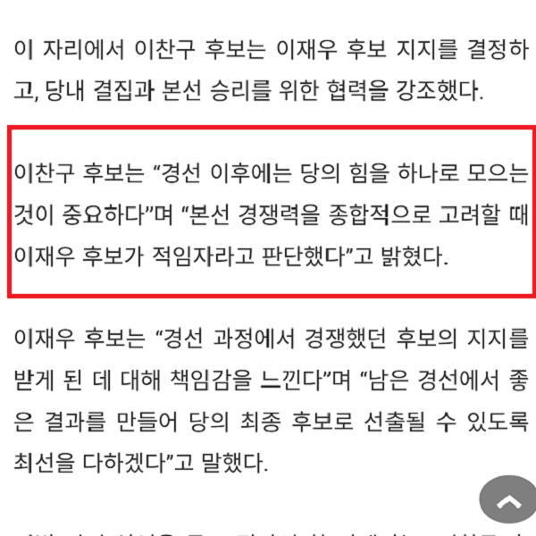 ºñ·Ï ÇØ´ç º¸µµ°¡ ƯÁ¤ Èĺ¸ÃøÀÇ ¼Óº¸¸¦ Àο뺸µµÇß´õ¶óµµ ÀÌ·± ÁßÂ÷´ëÇÑ »óȲ¿¡¼´Â ¹Ýµå½Ã ÁöÁö¼±¾ðÀÇ ´ç»çÀÚÀÎ ÀÌÂù±¸ Èĺ¸ÀÇ È®ÀÎ ÀýÂ÷¸¦ °ÅÃÄ¾ß Çϸç,ÀÌÂù±¸ Èĺ¸¿ÍÀÇ ÀÎÅͺ並 ÅëÇÑ À°¼º ¸àÆ®°¡ È®º¸µÈ µÚ¿¡ µû¿ÈÇ¥ ±â»ç°¡ ³ª°¡¾ß ÇÑ´Ù.