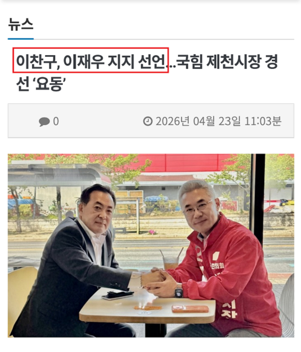 ÇØ´ç ¸Åü º¸µµ¿¡ ºñÇØ ¶Ç ´Ù¸¥ ¸ÅüÀÇ 2026³â 04¿ù 23ÀÏ 13:01ºÐ ÀÇ "ÀÌÂù±¸¡¤¡¤¡¤Á¤Ä¡ ¼±¹è·Î¼ ´ö´ã°ú Á¶¾ðÇß´Ù¡±ÀÇ Å¸ÀÌÆ² º¸µµ´Â ¿Ã¹Ù¸¥ º¸µµ·Î È®ÀεƴÙ.