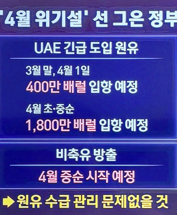 ÀÌ¿¡µû¶ó È£¸£¹«ÁîÇØÇù ¿¬¾È¿¡ ¹ßÀÌ ¹­¿© ÀÖ´Â Çѱ¹ÀÇ ´ëÇü À¯Á¶¼± 9ôÀÌ È£¸£¹«Áî ÇØÇùÀ» Åë°úÇÒ °¡´É¼ºÀÌ ³ô¾ÆÁ® 4¿ù ¼®À¯À§±â¼³Àº ¼ö¸é ¾Æ·¡·Î °¡¶ó¾ÉÀ» °ÍÀ¸·Î º¸ÀδÙ.Á¤ºÎ´Â ¾Õ¼­ È£¸£¹«ÁîÇØÇù ºÀ¼â°¡ ´çÀå Ç®¸®Áö ¾Ê¾Æµµ 4¿ù ¼®À¯ ¼ö±Þ¿¡´Â ¹®Á¦°¡ ¾ø´Ù¸ç,4¿ù ¼®À¯ ´ë¶õ¼³À» ÀÏÃàÇÑ ¹Ù ÀÖ´Ù.