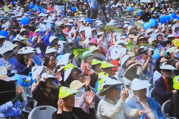 ±¹¹ÎÀÇÈû ±è¹®¼ö ´ëÅë·É È帰¡ ±ÝÀÏ(30ÀÏ) Á¦ÃµÀ» ¹æ¹®ÇØ Áß¾Ó½ÃÀå¿¡¼­ À¯¼¼¸¦ ÆîÃÆ´Ù. ÀÌ ÀÚ¸®¿¡´Â Á¦Ãµ´Ü¾ç ¾öÅ¿µ ±¹È¸ÀÇ¿øÀ» ºñ·ÔÇØ ±è±âÇö Àü ±¹¹ÎÀÇÈû ´ç´ëÇ¥(Çö ¿ï¡¦